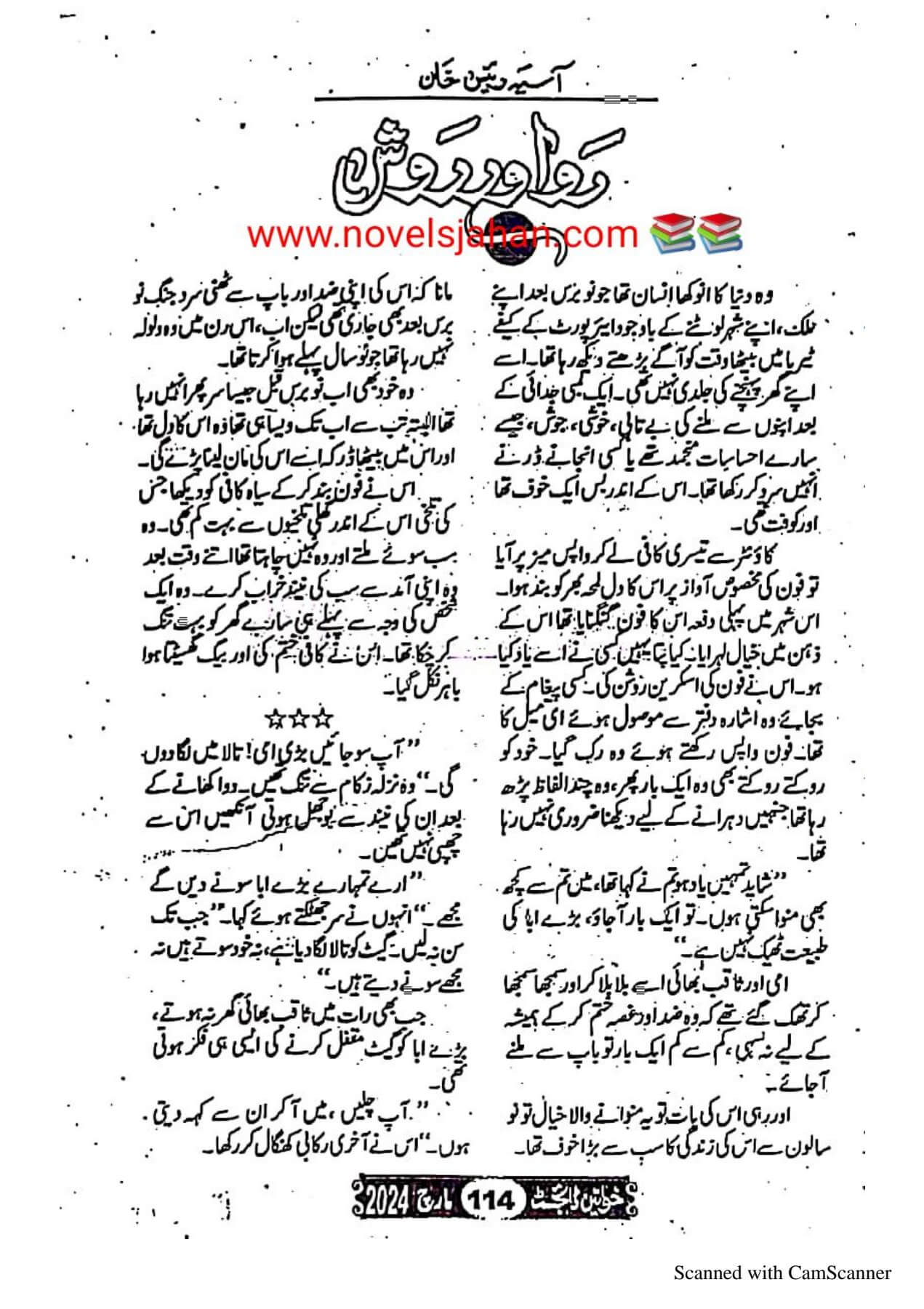 Novel Description 📖 ناول کا نام: رو اور روش ✍️ مصنفہ: آسیہ رئیس خان📚 شائع ہوا: خواتین ڈائجسٹ، مارچ 2024 👩❤️👨 ہیرو ودیع اور ہیروئن طوبیٰ کزنز ہیں جوائنٹ فیملی میں رہتے ہیں۔🌹👨👦👦 ودیع کے… Ro Aur Rawish By Asia Raees Khan.