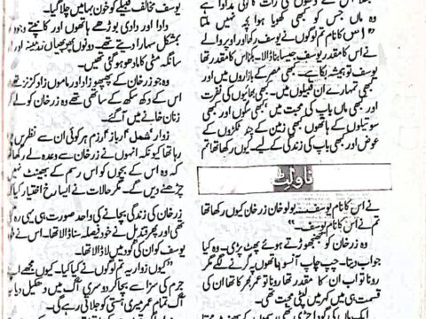 Novel Description 📖 ناول کا نام: زخم کو ضد تھی مسیحائی سے✍️ مصنفہ: فوزیہ یاسمین🗞️ شائع ہوا: کرن ڈائجسٹ (ستمبر 2009 تا فروری 2010) یہ ایک دل کو چھو لینے والی کہانی ہے 💖۔ 👤 ہیرو روحان کے والدین میں…