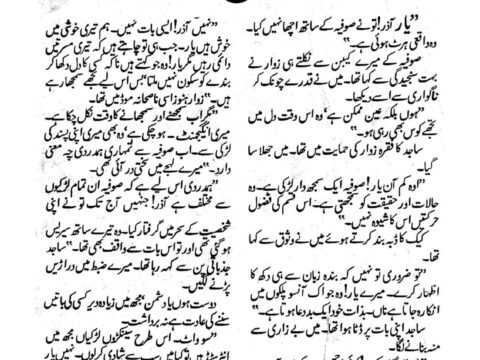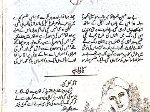 Novel Description ناول : محبت رنگ بدلتی ہےاشاعت: کرن ڈائجسٹ جنوری 2002مصنفہ: تنزیلہ ریاض یہ ایک خوش مزاج اور مسکراہٹوں سے بھری خوبصورت کہانی ہے جس میں ہیرو باس ہے 💝۔ ہیرو تیمور کے والدین کے انتقال کے بعد اس…